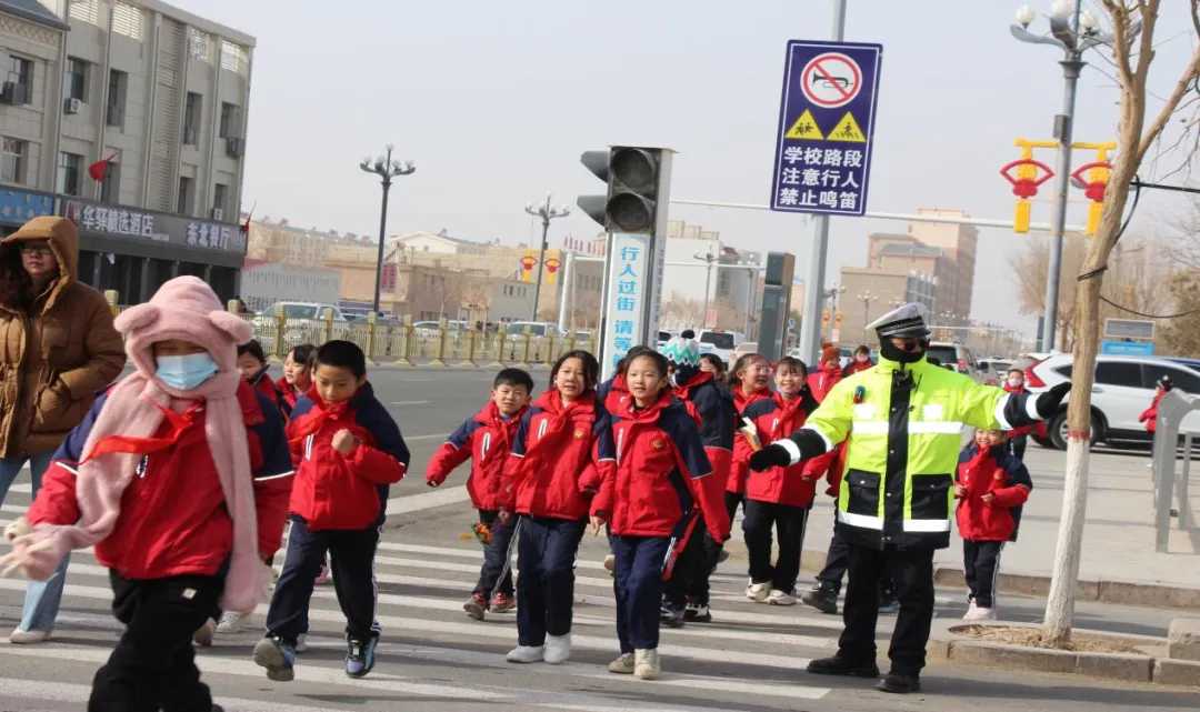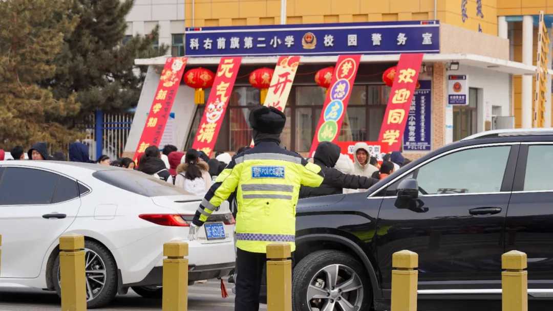 巴彦淖尔市公安局交管支队乌拉特中旗大队实行高峰值守+动态巡逻模式,在校园门口及关键路口疏导车流、规范停车,引导接送学生车辆即停即走并护送学生安全过街。同步完善警校联动机制,加强校园周边交通设施排查维护,利用护学间隙开展交通安全宣传,提升学生与家长交通安全意识。