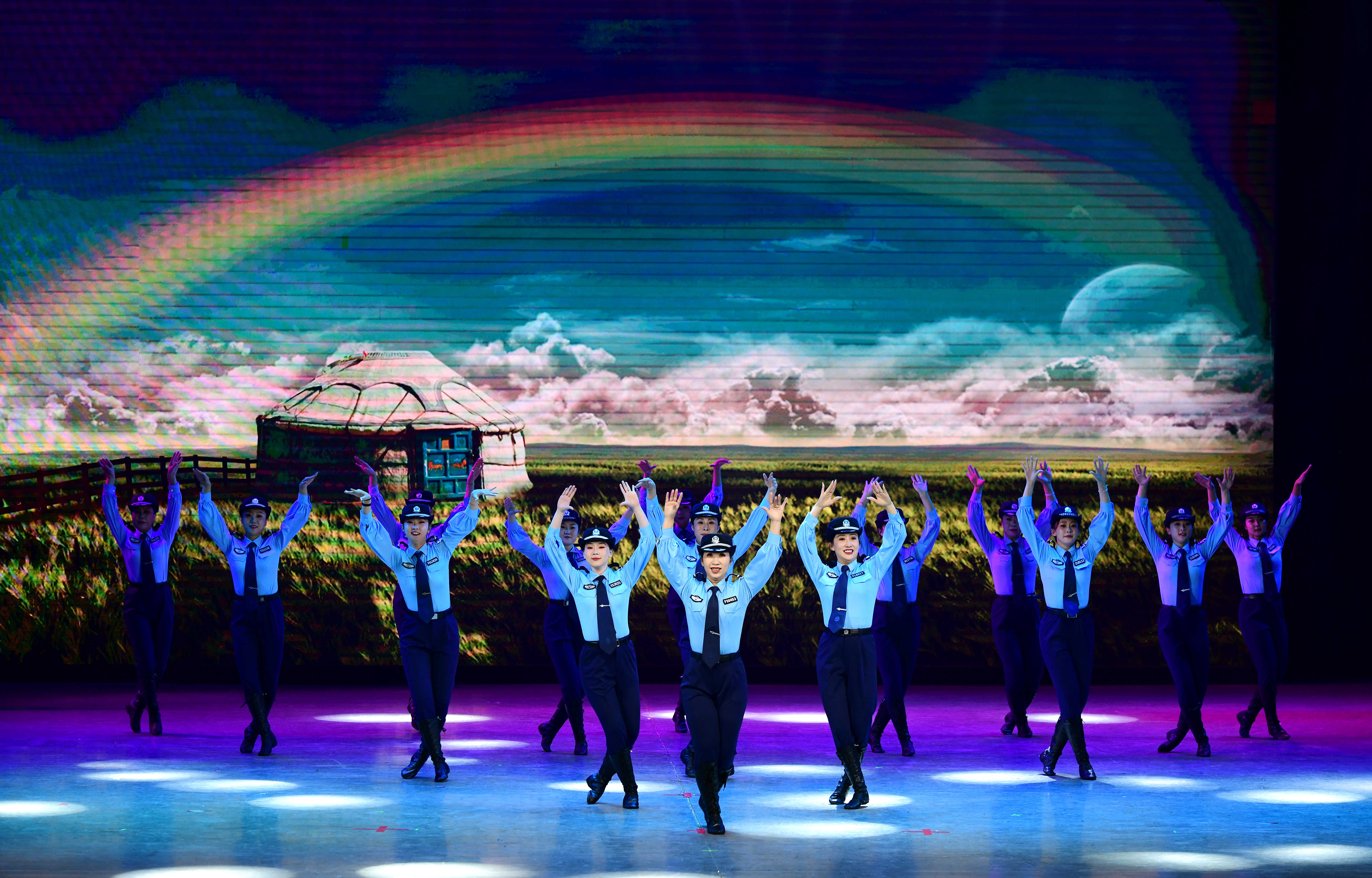 舞蹈《北疆那抹蓝》将民族舞蹈元素与女警飒爽风采巧妙融合,以灵动舞姿展现赛罕公安开拓进取、奋勇争先的精神风貌,传递立足岗位、勇毅前行、共筑公安事业新未来的信心与决心。
