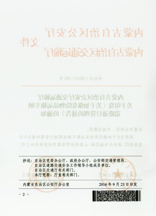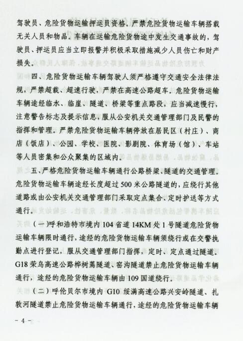 【道路交通管理】内蒙古自治区公安厅交通运输厅关于印发《关于加强危险物品运输车辆道路通行管理的公告》的通知