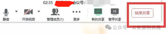 点击“结束共享”“退出共享”等字样